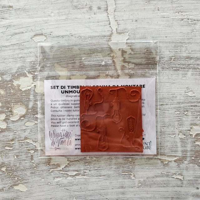 Da utilizzare insieme a: Piastrella per timbro (supporto), Tack’n peel adesivo per timbro (adesivo che permette di attaccare il timbro alla piastrella) e Anticatore Seppia Mini (colore per timbro).